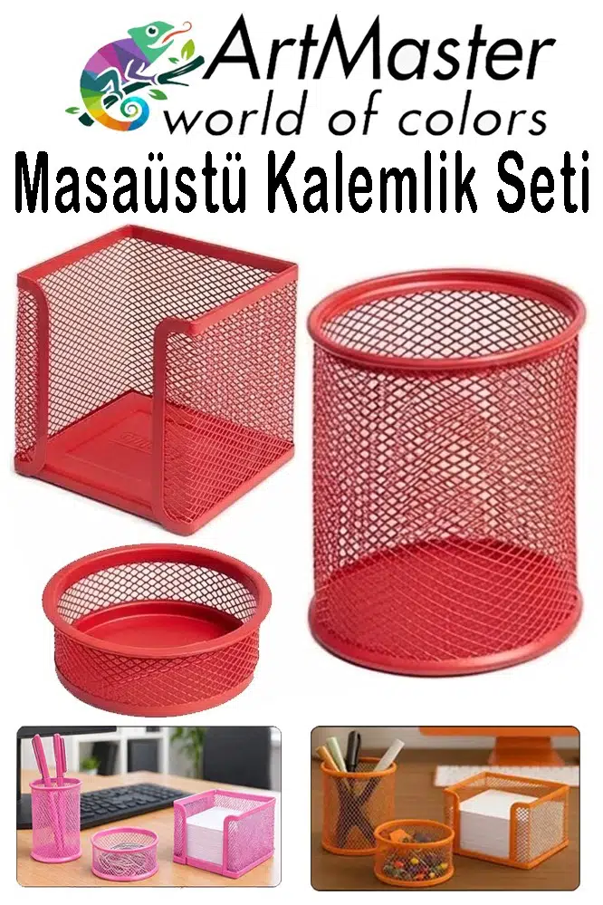 | Etiketler | Kırmızı Masaüstü Fileli Kalemlik Seti 3 Parça 1 Paket 3 lü Masa Üstü Düzenleyici Kalemlik Küp Notluk Ataşlık |