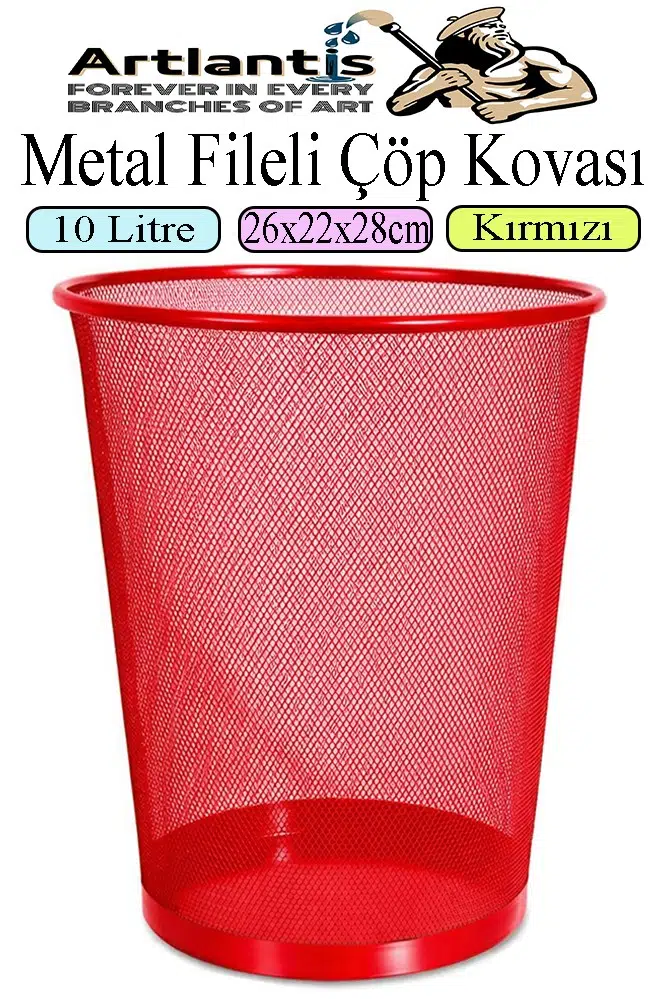 Ürün Adı: Artlantis Kırmızı Metal Evrak Rafı 3 lü Masaüstü Kalemlik 3 lü ve Fileli Çöp Kovası 1 Paket Masaüstü A4 Dosya Düzenleyici Not