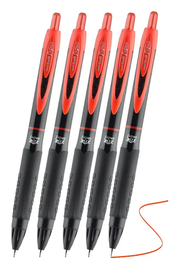 Ürün Adı: Kırmızı Pilot Kalem Signo 307 5 Adet Uniball Basmalı Pilot Kalem 0.5 mm Roller Uçlu Pilot Kalem İnce Uçlu Likit Mürekkep