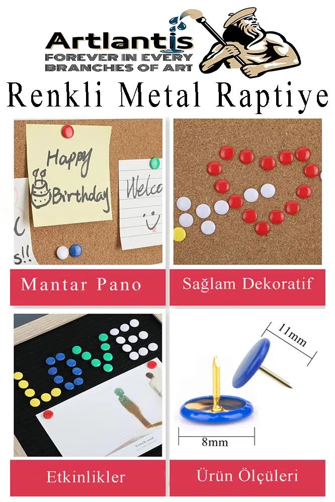 Ürün Adı: Kırmızı Raptiye 200 Adet 1 Paket Renkli Pvc Kaplı Başlıklı Raptiye Plastik Yuvarlak Düğmeli Raptiye Pano Okul Ofis Büro