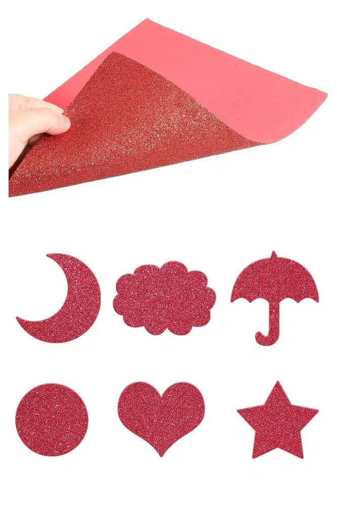 EtiketlerKırmızı Simli Eva 50x70 cm 2 Adet Simli Eva Süngeri Okul Kreş Anasınıfı Elişi Etkinlikleri