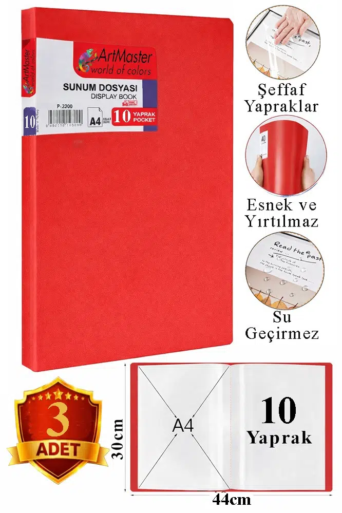 Ürün Adı: Artmaster Kırmızı Sunum Dosyası 10 lu 3 Adet Poşet Dosyalı Katalog Dosyası 10 Poşetli Kendinden Dosya Plastik Kapaklı