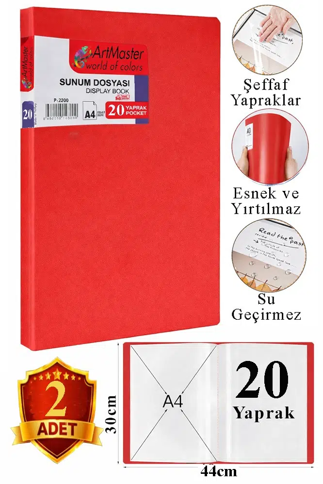 Ürün Adı: Artmaster Kırmızı Sunum Dosyası 20 li 2 Adet Poşet Dosyalı Katalog Dosyası 20 Poşetli Kendinden Dosya Plastik Kapaklı
