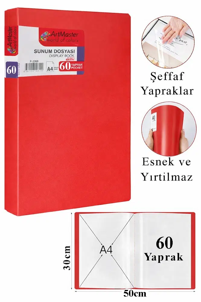 Ürün Adı: Artmaster Kırmızı Sunum Dosyası 60 lı 1 Adet Poşet Dosyalı Katalog Dosyası 60 Poşetli Kendinden Dosya Plastik Kapaklı
