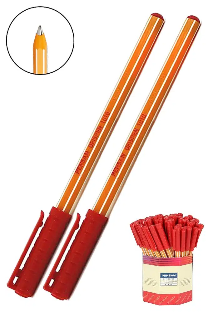 Ürün Adı: Kırmızı Tükenmez Kalem 1010 1.0mm 2 Adet Pensan Büro Ofispen Büro Plastik Kapaklı Tükenmez Kalem