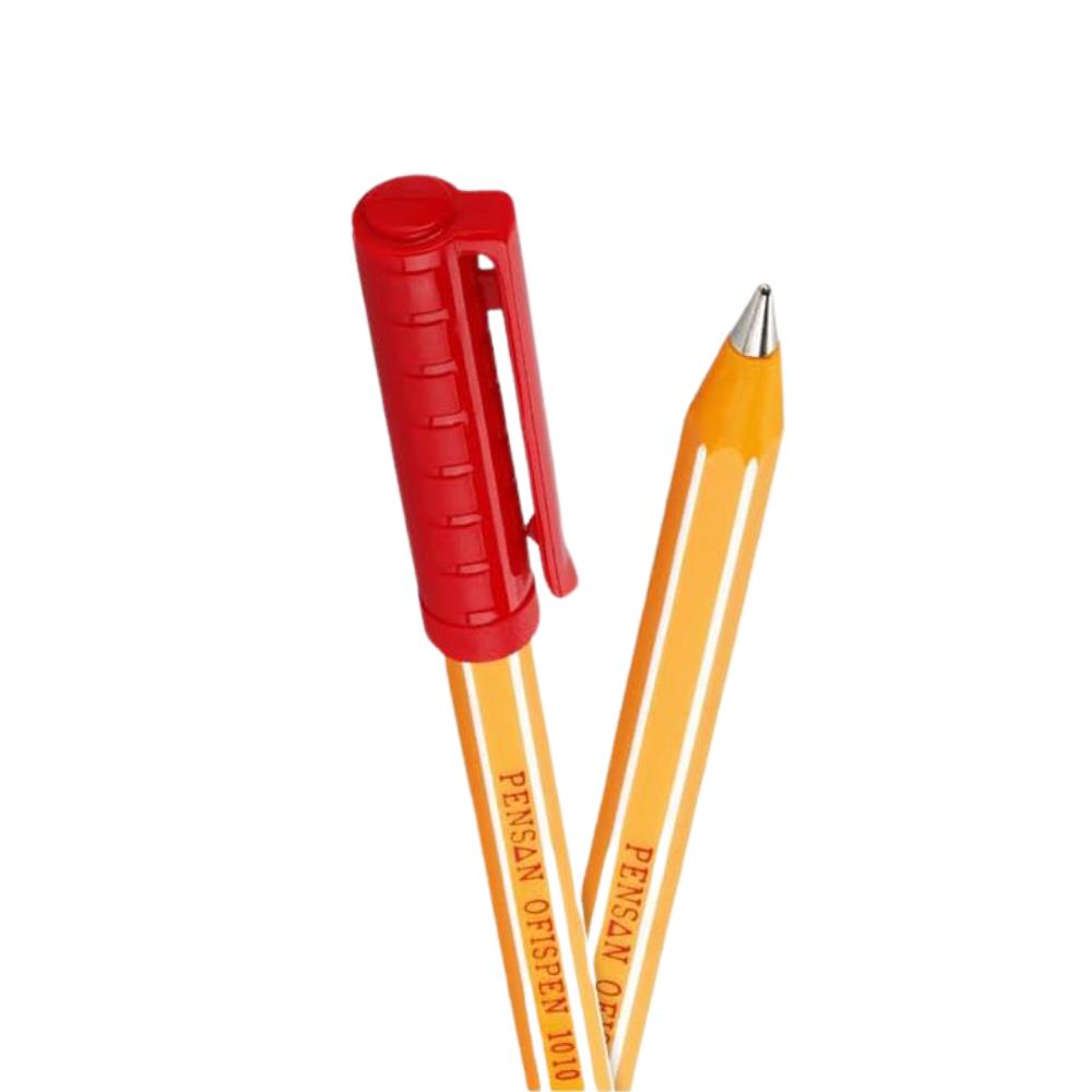 Ürün Adı: Kırmızı Tükenmez Kalem Ofispen 1010 Çizgili 60 Adet Pensan Büro Kalemi 60 Adet
