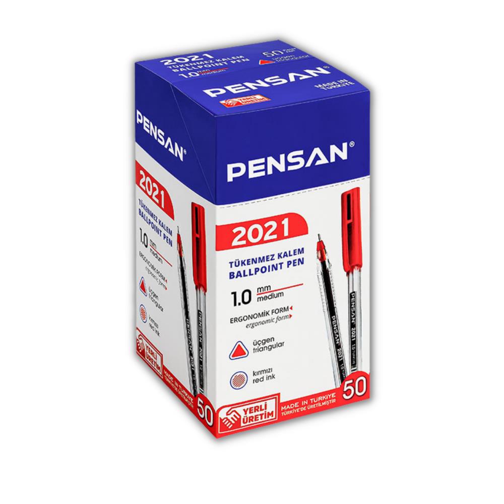Ürün Adı: KırmızıTükenmez Kalem Pensan 2021 Şeffaf Üçgen Gövde 1.0 mm 50 adet