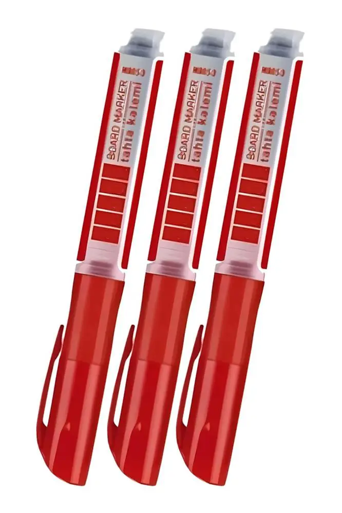 Ürün Adı: Kırmızı Yazı Tahta Kalemi 3 Adet Kartuşlu Değişebilen Kolay Silinebilir Beyaz Yazı Tahta Kalemi Doldurulabilir