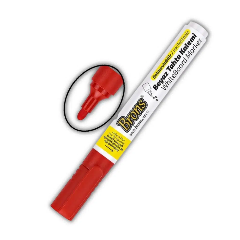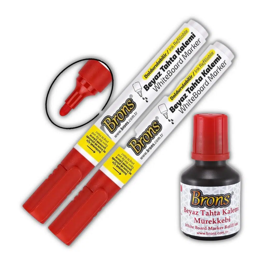 Ürün Adı: Brons Kırmızı Yazı Tahta Kalemi Doldurulabilir 2 Adet ve Silinebilir Mürekkep 30 ml 1 Adet Brons Yazı Tahta Kalem Seti