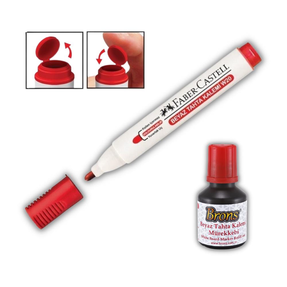 Ürün Adı: Kırmızı Faber Castell W-20 Yazı Tahta Kalemi 1 Adet Ve 30 cc Mürekkep 1 ADET