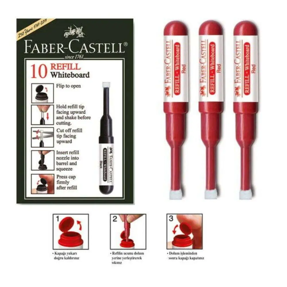 Ürün Adı: Kırmızı Yazı Tahta Kalemi Mürekkebi 3 Adet Faber Castell W-20 Yazı Tahta Kalemi Mürekkep