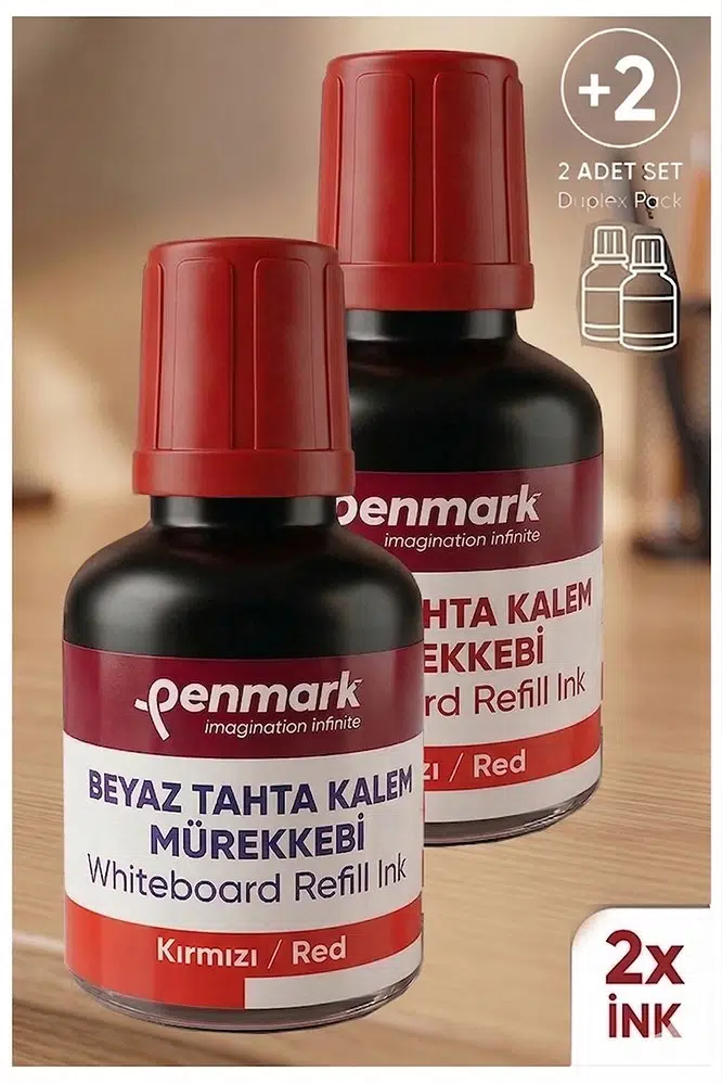Ürün Adı: Kırmızı Yazı Tahta Kalemi Mürekkebi 30 ml 2 Adet Penmark Tahta Kalemi Mürekkepi Kolay Silinebilir Doldurulabilir Canlı