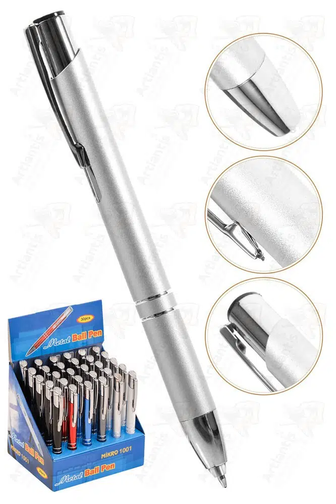 Ürün Adı: Kısa Boylu Metal Tükenmez Kalem 1 Adet Mavi Renkli Cep Kalemi Tükenmez Basmalı Mikro 1001 Mekanizmalı Tükenmez