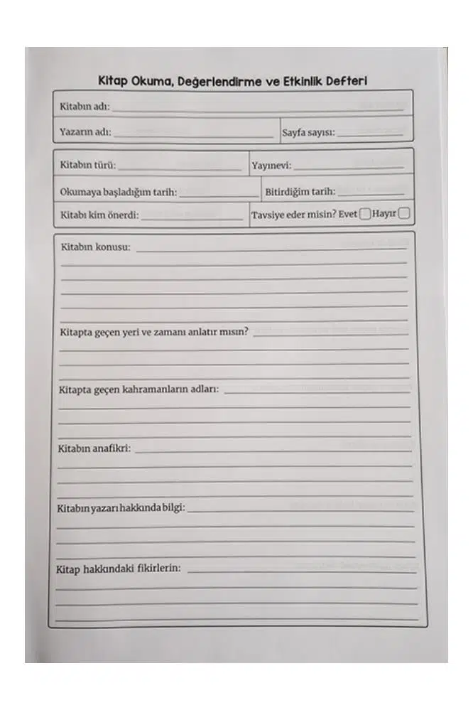 | Etiketler | Kitap Okuma Değerlendirme ve Etkinlik Defteri Özet Defteri 1 Adet Kitap Özet Defteri |