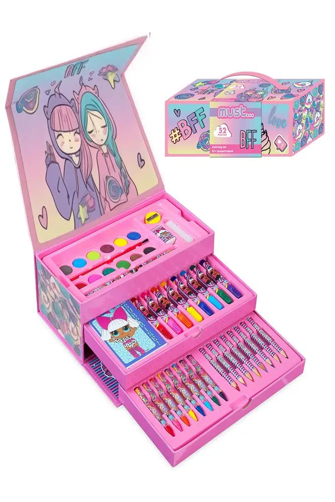 Ürün Adı: Kız Çocukları İçin Hediye Kutulu Boyama Seti 1 Paket 12 li Suluboya 8 li Keçeli Kalem 8 li Kuruboya 8 li Pastel Boya