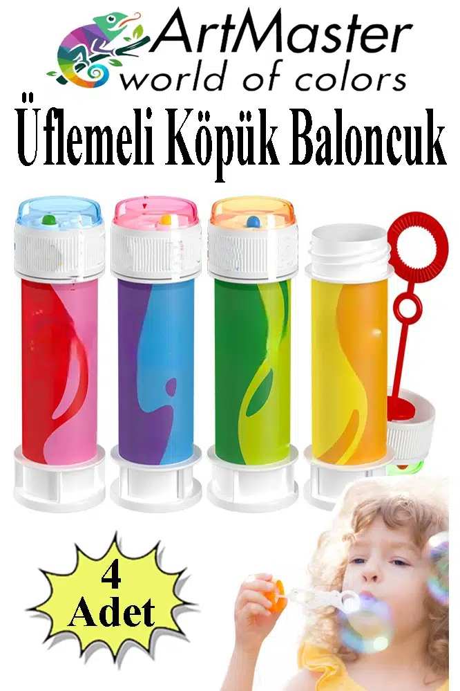 Ürün Adı: Artmaster Köpük Baloncuk Oyuncağı 4 Adet Üflemeli Rengarenk Bol Köpüklü Çocuk Köpük Baloncuk Oyuncağı Baloncuk Eğlencesi Bubbles
