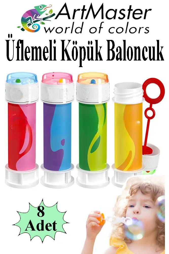 Ürün Adı: Artmaster Köpük Baloncuk Oyuncağı 8 Adet Üflemeli Rengarenk Bol Köpüklü Çocuk Köpük Baloncuk Oyuncağı Baloncuk Eğlencesi Bubbles