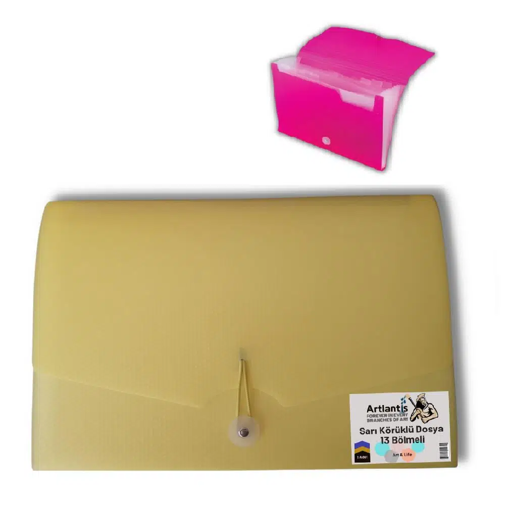 - 13 Bölmeli akardiyon körüklü dosya sarı renk