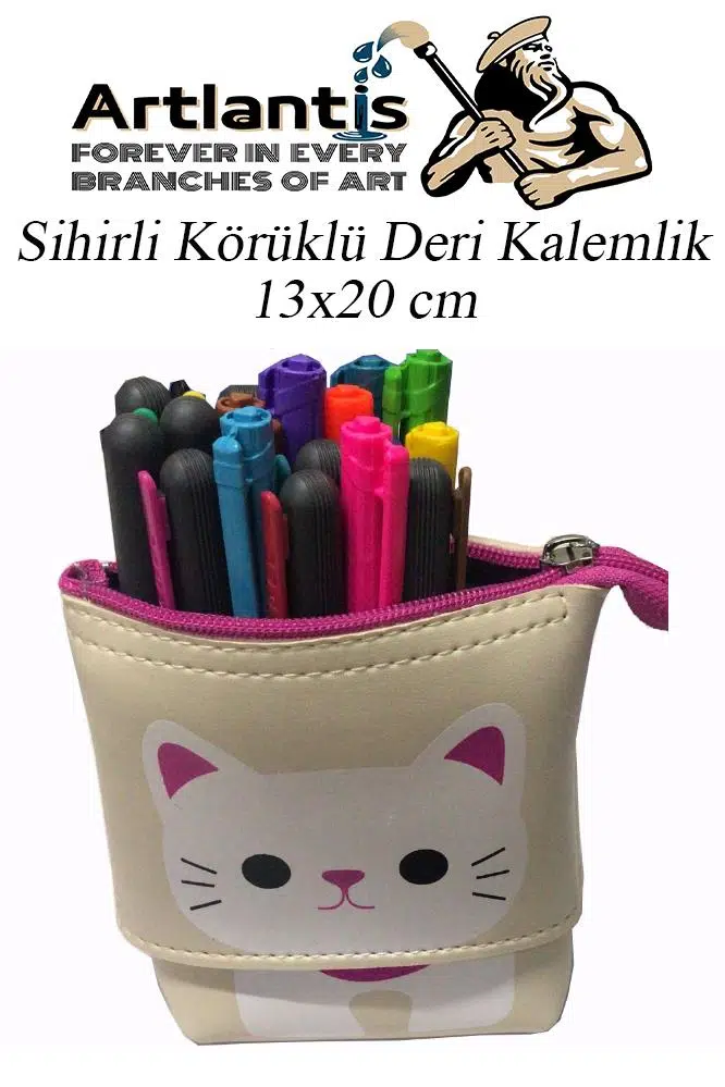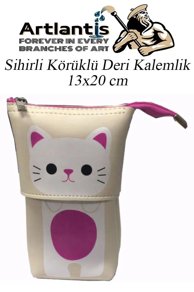 Ürün Adı: Körüklü Kalemlik Kedi 1 Adet Krem Renk Sihirli Körüklü Deri Kalemlik Kalem Çantası Sevimli Kedi Kalem Kutusu