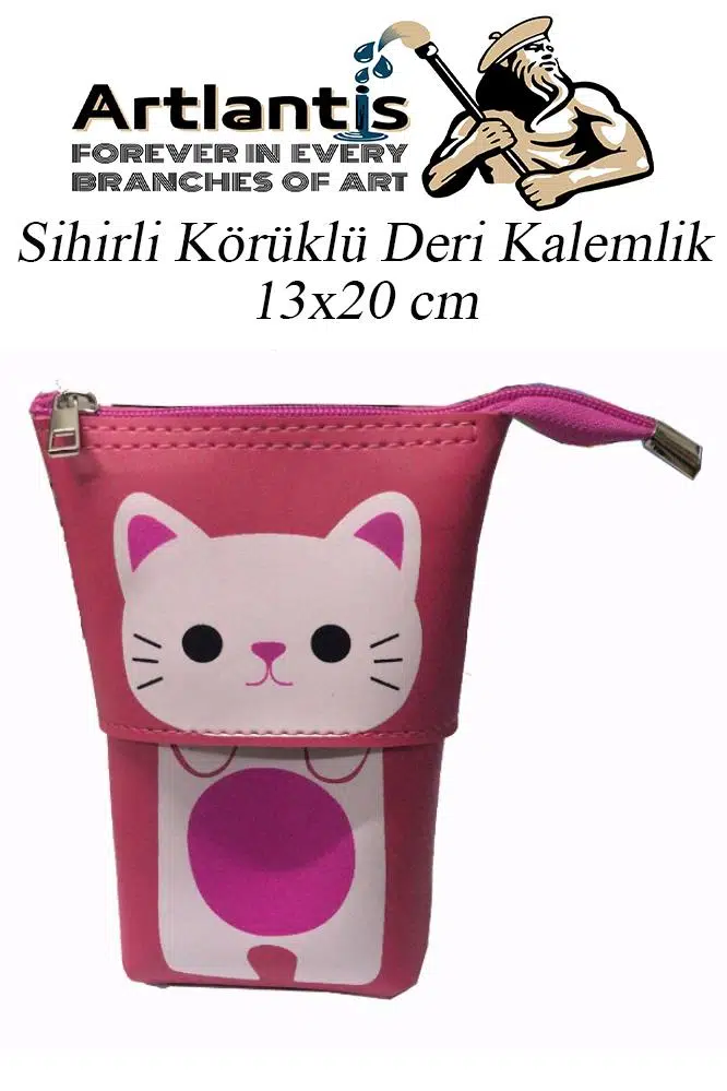 Ürün Adı: Körüklü Kalemlik Kedi 1 Adet Pembe Renk Sihirli Körüklü Deri Kalemlik Kalem Çantası Sevimli Kedi Kalem Kutusu