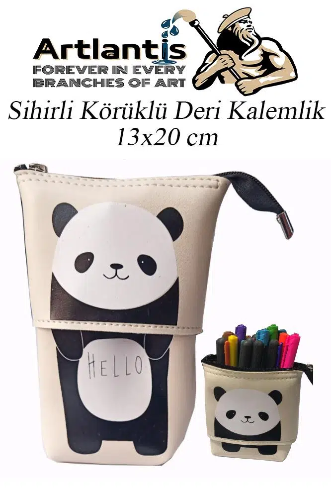 Ürün Adı: Körüklü Kalemlik Panda 1 Adet Krem Renk Sihirli Körüklü Deri Kalemlik Kalem Çantası Sevimli Panda Kalem Kutusu