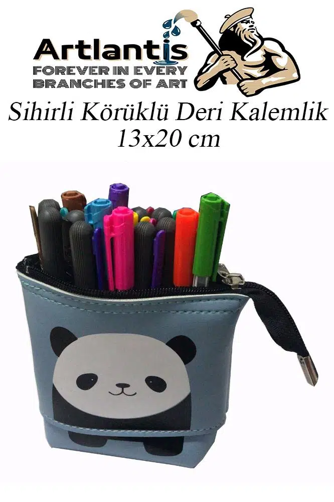 Ürün Adı: Körüklü Kalemlik Panda 1 Adet Mavi Renk Sihirli Körüklü Deri Kalemlik Kalem Çantası Sevimli Panda Kalem Kutusu