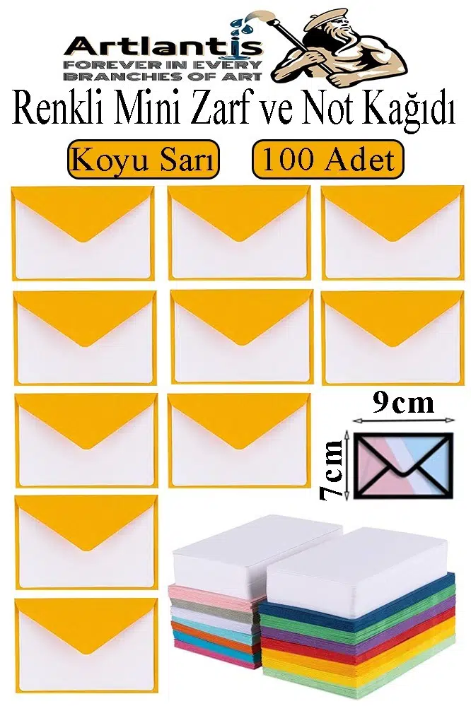 Ürün Adı: Koyu Sarı Mini Zarf 7x9 cm Not Kağıtlı 100 Adet Küçük Koyu Sarı Zarf Mektup Oyun Zarfı Doğum Günü Dilekleri Zarfı Canlı