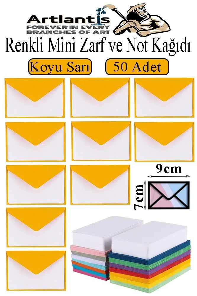 Ürün Adı: Koyu Sarı Mini Zarf 7x9 cm Not Kağıtlı 50 Adet Küçük Koyu Sarı Zarf Mektup Oyun Zarfı Doğum Günü Dilekleri Zarfı Canlı