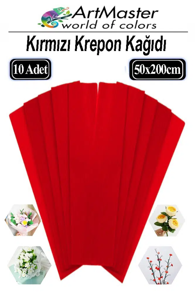 Ürün Adı: Artmaster Krapon Kağıdı Kırmızı Renk 10 Adet 50x200 cm Grapon Kağıdı 10'lu Okul Proje Sınıf Anaokulu Kreş Süsleme