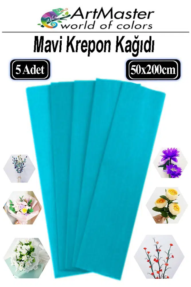 Ürün Adı: Artmaster Krapon Kağıdı Mavi Renk 5 Adet 50x200 cm Grapon Kağıdı 5'li Okul Proje Sınıf Anaokulu Kreş Süsleme