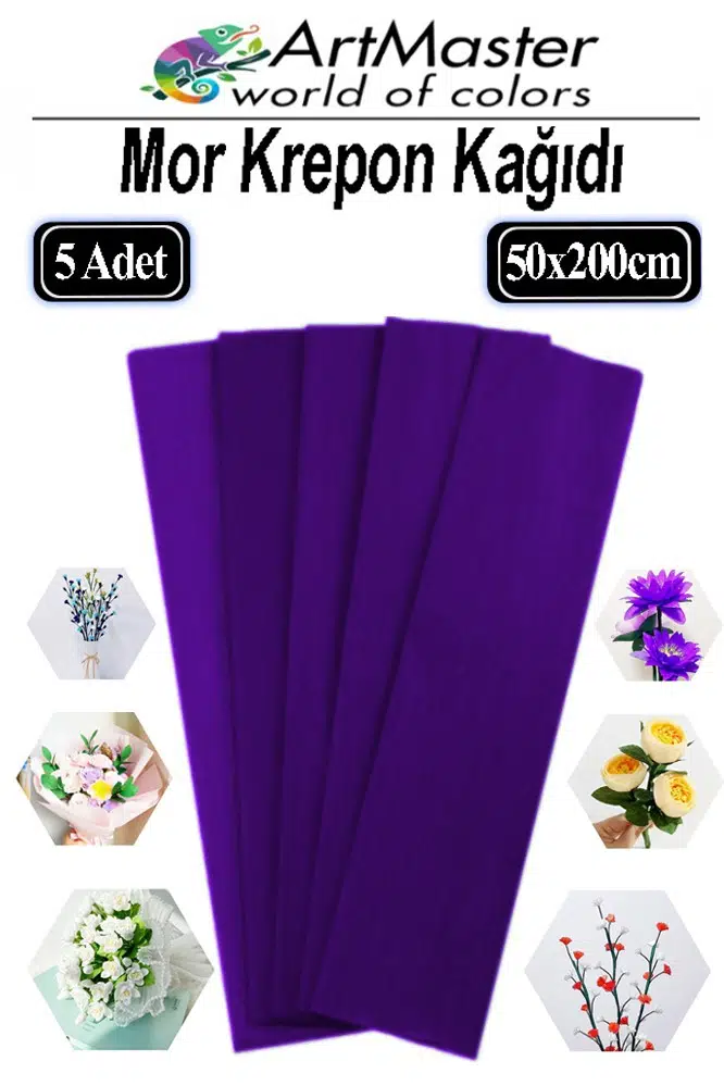 Ürün Adı: Artmaster Krapon Kağıdı Mor Renk 5 Adet 50x200 cm Grapon Kağıdı 5'li Okul Proje Sınıf Anaokulu Kreş Süsleme