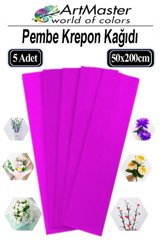 Ürün Adı: Artmaster Krapon Kağıdı Pembe Renk 5 Adet 50x200 cm Grapon Kağıdı 5'li Okul Proje Sınıf Anaokulu Kreş Süsleme