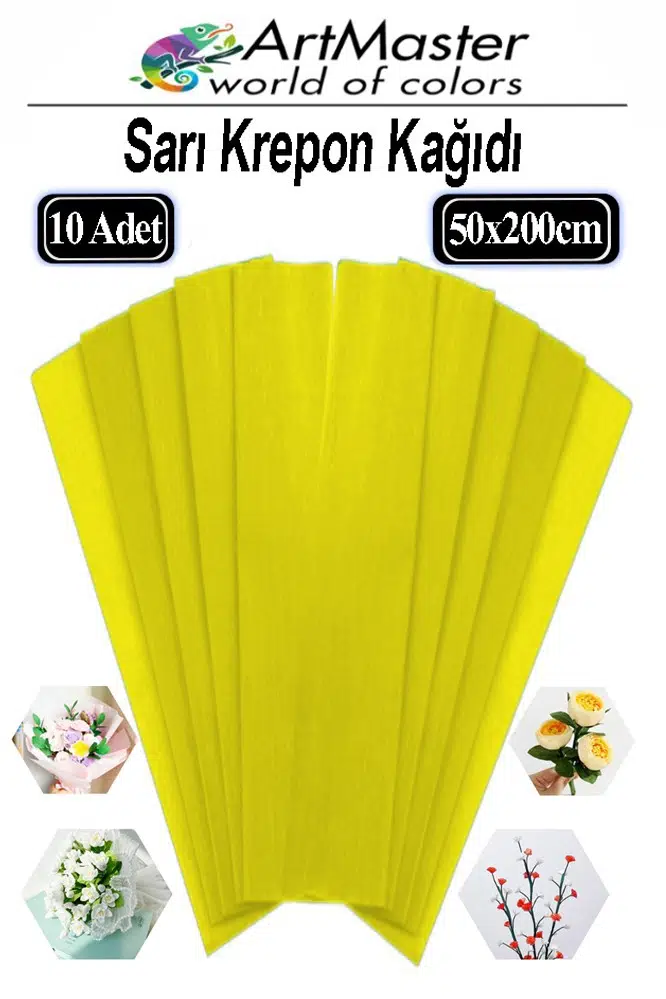 Ürün Adı: Süsleme Krapon Kağıdı Sarı Renk 10 Adet 50x200 cm Grapon Kağıdı 10'lu Okul Proje Sınıf Anaokulu Kreş Süsleme
