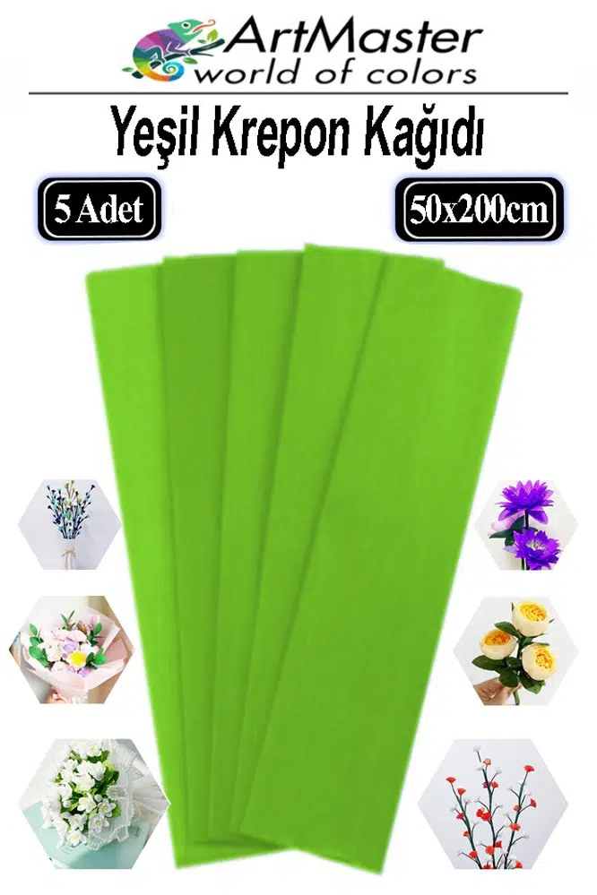 Ürün Adı: Artmaster Krapon Kağıdı Yeşil Renk 5 Adet 50x200 cm Grapon Kağıdı 5'li Okul Proje Sınıf Anaokulu Kreş Süsleme
