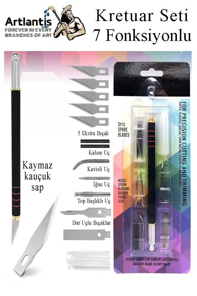 Ürün Adı: Kretuar 7 Fonksiyonlu Yedek Bıçaklı 1 Paket Hobi Maket Tasarım Neşteri Çelik Alaşımlı Paslanmaz Hassas Kesim Bıçağı
