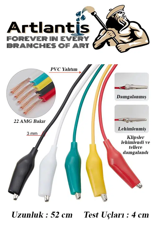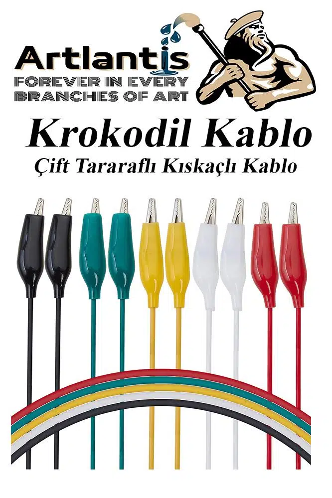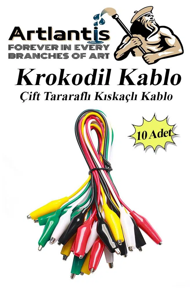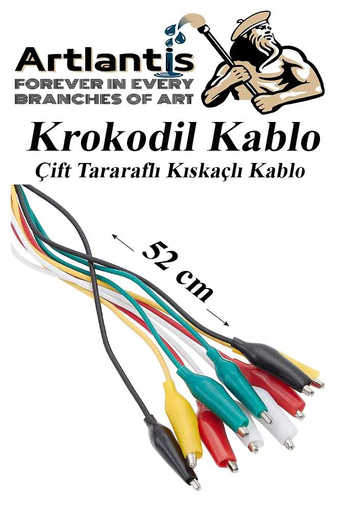 Ürün Adı: Artlantis Krokodil Kablo 52 cm 10 lu 1 Paket Timsah Ağızlı İki Tarafı Kıskaçlı Kablo Elektrik Deney Kablosu Klipsli