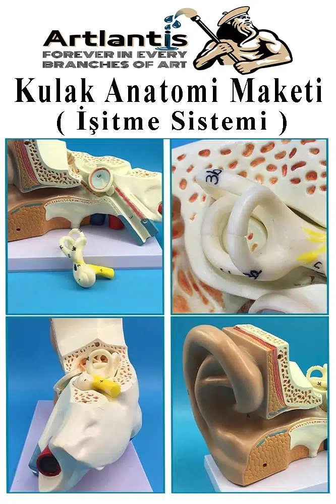 Kulak modelleri harika bir eğitim aracıdır ve özellikle tıbbi bölümlerde, laboratuvarlarda, eğitim merkezlerinde, hastanelerde, kliniklerde ve diğer yerlerde insan kulağının anatomisinin öğretilmesi için uygundur. Kulağın çeşitli parçaları ve yapıları (kulak kepçesi, kulak kanalı, kulak zarları, orta kemik, iç kulak vb.), yapıyı ve hareket ilkesini anlamanıza yardımcı olmak için açıkça gösterilmiştir.