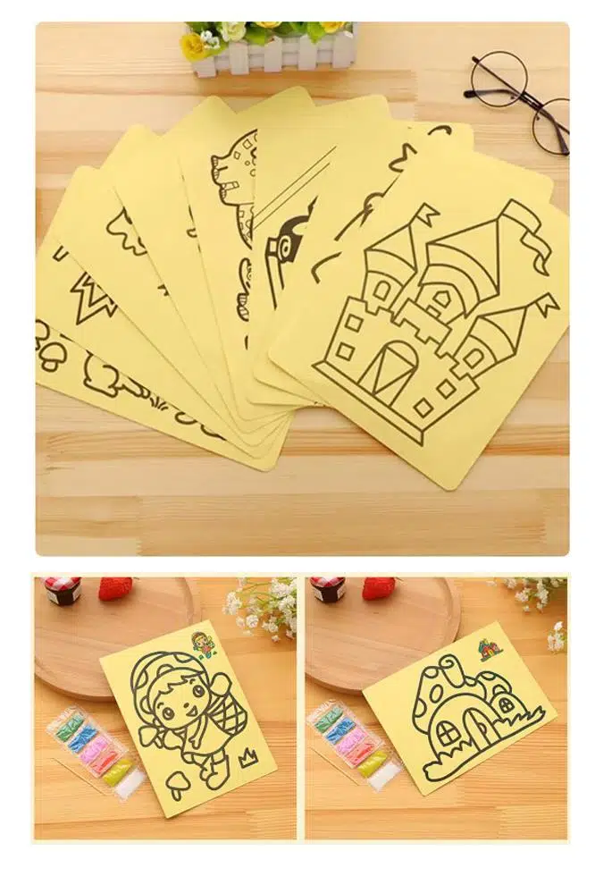 Ürün Adı: Kum Boyama Seti 10 Adet 20x30 cm A4 Boyutunda Büyük Boy Kaliteli Kum Boyama Çalışması Tuz Boyama Etkinlik
