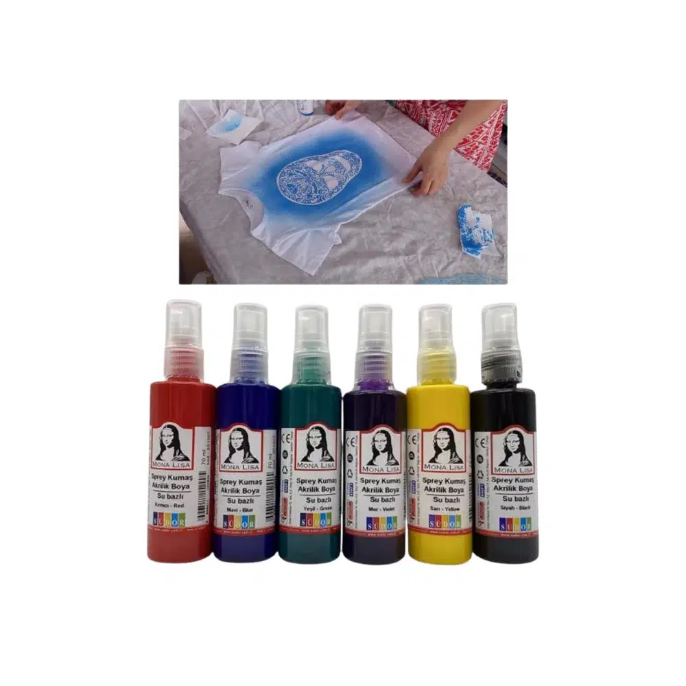 Ürün Adı: Kumaş Boyası Sprey 6 Renk 70ml*6 Adet Monalisa Tekstil Boyası Sprey Boya