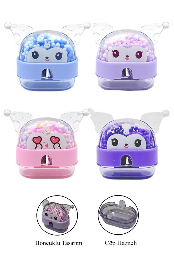 Ürün Adı: Kuromi Kalemtraş 4 Adet Boncuklu Hazneli Tek Bıçaklı Kalem Açacağı Sevimli Plastik Kalem Traş Çöp Hazneli