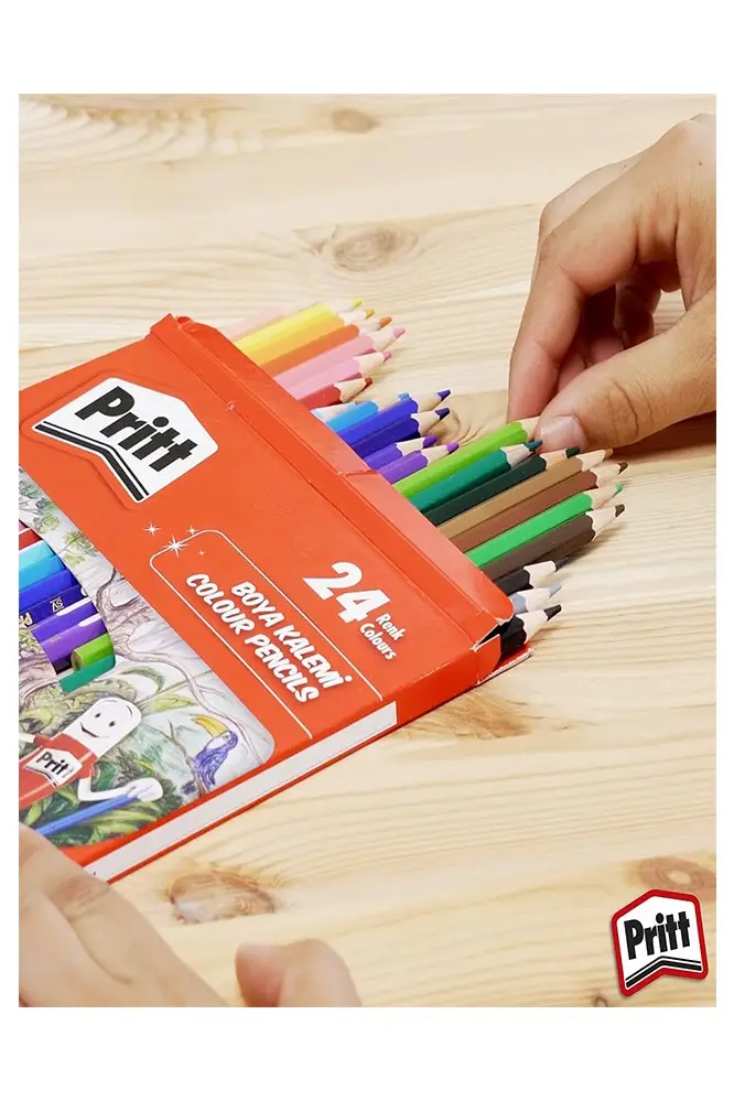 Ürün Adı: Kuru Boya Kalemi 24 Renk Karton Kutu 1 Paket Pritt 24 lü Kuruboya Tam Boy Renkli Kalem Kaliteli Yumuşak Uçlu Canlı Renk
