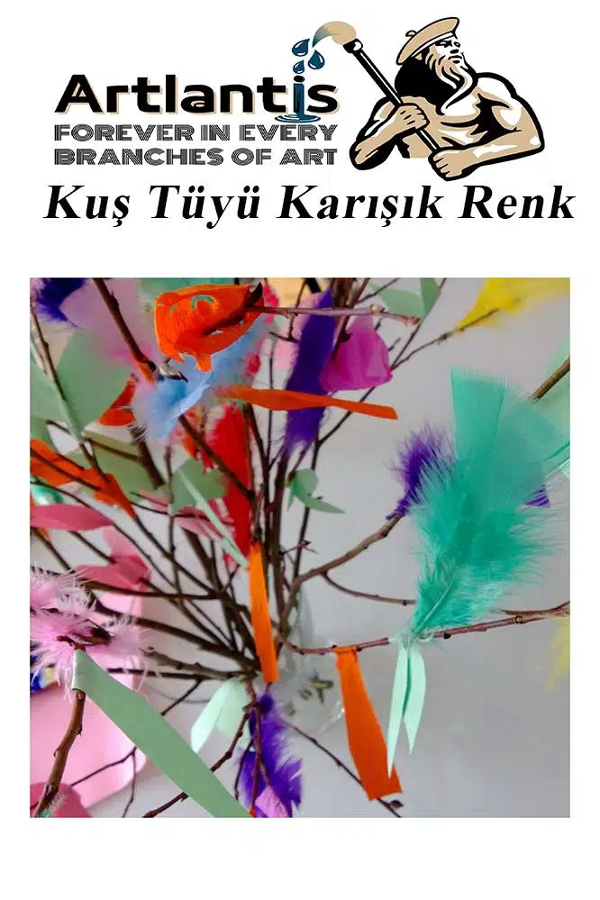 Ürün Adı: Kuş Tüyü Renkli 12 Li 1 Paket 14 cm Tüy Karışık Renk Hobi Okul Öncesi Kreş Anasınıfı Kuş ve Kaz Tüyü Renkli