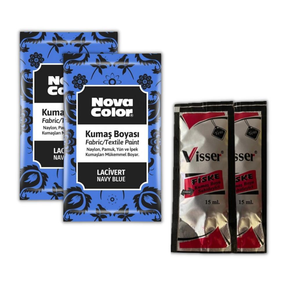 Ürün Adı: Nova Color Lacivert toz kumaş boyası 12 gr 2 adet Visser Kumaş Sabitleyici Fiske 15 ml 2 adet