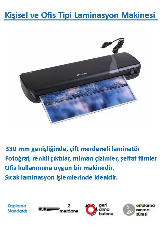 Ürün Adı: Laminasyon Makinesi 1 Adet Mapilam LM37 A3 Kişisel Ofis Sıcak Laminasyon Makinesi Fotoğraf Şeffaf Kaplama