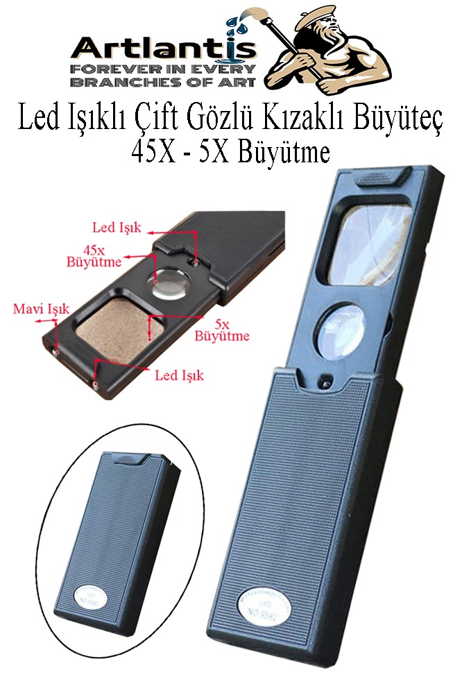 Ürün Adı: Led Işıklı Çift Gözlü Kızaklı Büyüteç 1 Adet Mor Işıklı 45X 5X Büyütme Lens El Tipi Lup Mercek Büyüteç Okul Büro Ofis