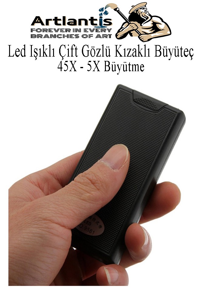~MOR IŞIKLI ÇİFT GÖZ BÜYÜTEÇ 45X 5X Büyütme Model NO :AL2563 Kullanımı: Görmekte zorluk çektiğiniz durumlarda cisimlere tutarak rahat bir şekilde görmenize olanak sağlar. Ürün Mor ışığı sayesinde Sahte para tespiti yapabilir. Takı,haritalar,dizinler,yasal belgeler,pulantika vb. gibi çeşitli alanlarda kullanabilirsiniz. Gözlük ile ürünü kullanabilirsiniz,uzun süreli kullanımda gözlerinizi yormaz. Ledli ışıklandırma sayesinde daha rahat kullanım sağlar.Paket içeriğine pil dahildir Ürün Özellikleri Yüksek kaliteli malzeme, Ekstra keskinlik Ve Ekstra netlik sağlar. Hafif ve küçük olduğunda rahat taşınır. Açılır kapanır yapı Büyütme (Göz 1) :45x Büyütme (Göz 2) :5x Paket içeriği: 1 Adet Mor Işıklı 45x 5x Çift Gözlü Büyüteç (AL2563)