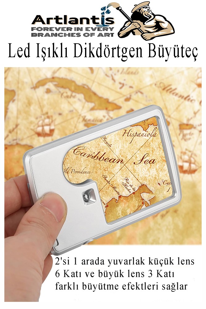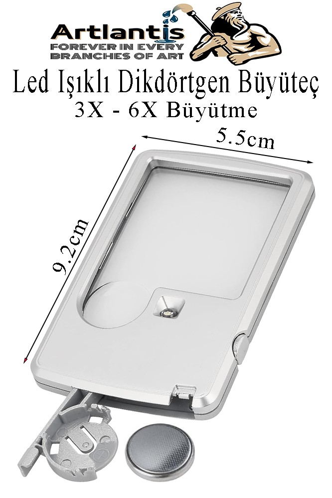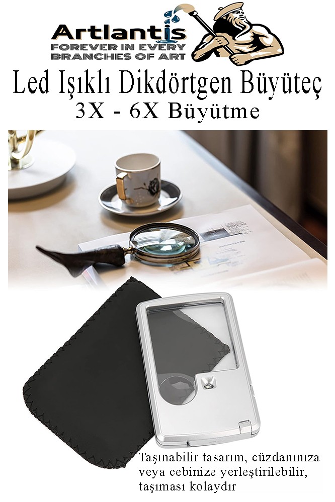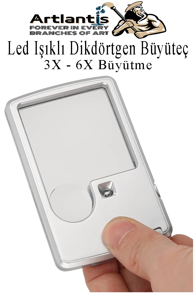 Ürün Adı: Led Işıklı Kart Tipi Büyüteç 1 Adet 3X 6X Büyütme Lens El Tipi Mercek Cep Büyüteç Kılıflı Okul Büro Ofis