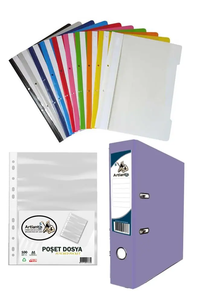 Ürün Adı: Lila Büro Klasörü Telli Dosya ve Poşet Dosya Seti 1 Adet Büro Klasörü 10 Renk Telli Dosya 100 Adet Poşet Dosya