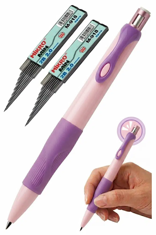 Lila Kalın Uçlu Kalem 2.0 mm 1 Adet ve 2.0 Mm Kalın Uç Siyah 2 Adet VR22 Kalın Uçlu Mekanik Kalem