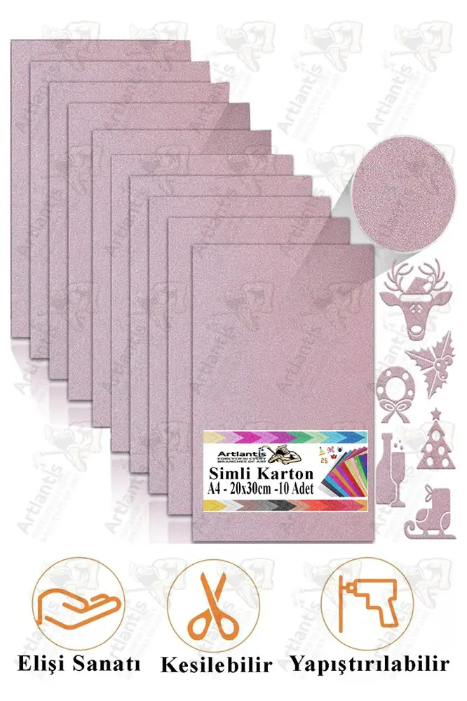 Dökülmeyen Simli Karton pürüzsüz zımpara kağıdı gibi hissettirir ve simli kağıt bir görünüm kazandırmak için kalın sim kullanır ve sim kolayca soyulmaz. 250 gsm simli kağıt, katlama, delme ve, kalıp kesiciler ve delgeçlerle kesme için mükemmeldir.Simimiz kağıda özel formülümüzle sıkıca yapıştırılmıştır, bu nedenle kullanırken rahatsız edici sim dökülmesi olmaz. Bir tarafı istediğiniz süsleme için parlak ve simli, pürüzsüz beyaz tarafı ise yazı yazmak veya diğer malzemelere yapıştırmak için idealdir (ARKASINDA TUTKAL YOKTUR).